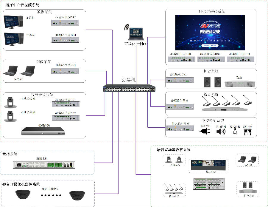 4K超高清LED拼接及图像采集:超高清图像无缝切换、大屏开窗、自由屏图像拖动和窗口缩放、图像轮训切换、预案图像存储及调用。