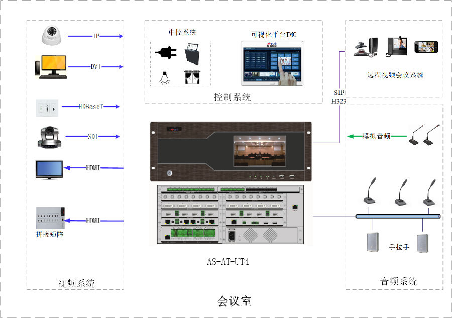 本次共建设1个会议室,使用1台米兰(milan)科技(AVSYS)多媒体综合管理一体机,实现统一控制管理,音视频调度,会议室互动等应用。