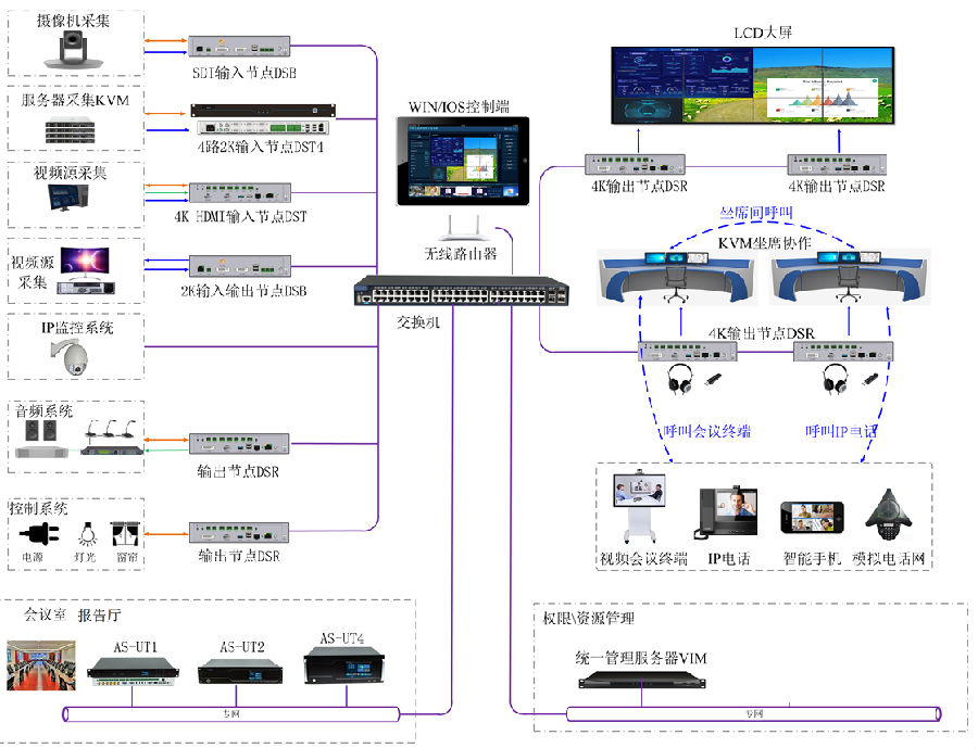1、 统一调度,权限管理 ,可视化操作,各系统互联互通,融合通信。