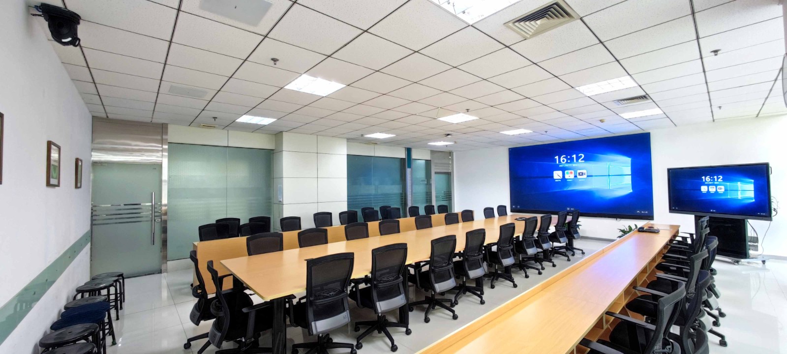 会议室采用米兰(milan)科技多媒体会议室解决方案,设计功能集显示系统、视频会议系统、数字会议发言讨论系统、音响扩声系统、中央集中控制系统、信号处理系统、会议智能摄像系统、会议录像系统等应用为一体,使用米兰(milan)科技音视频综合一体机,实现统一控制管理、音视频调度、会议室互动等应用。按照此方案配置装备的多媒体会议室,可以满足绝大多数政企会议室的使用需求。