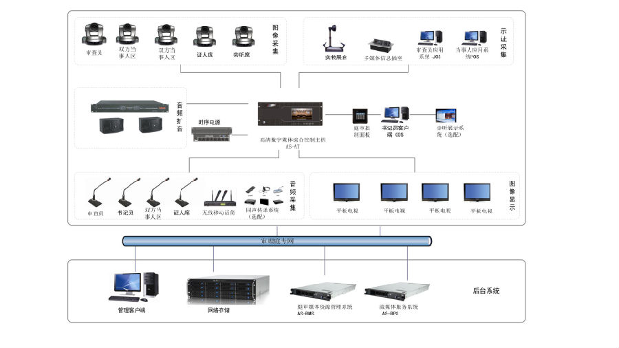 3、一体化应用:音频、视频、控制、远程提讯、互联网庭审、录制、证人保护等功能于一体。