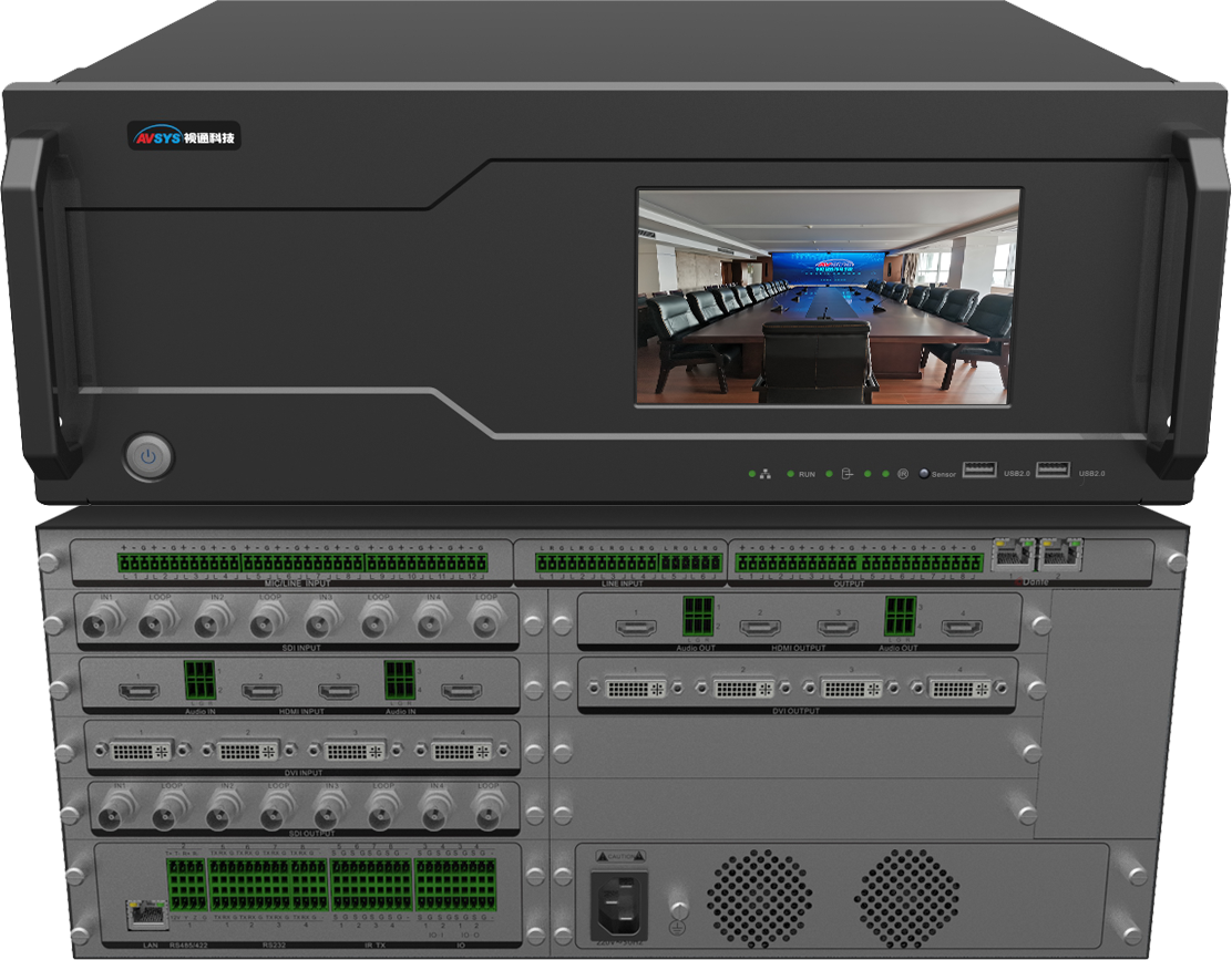 AS-UT4音频视综合一体机具备六大功能: AVCRTM六剑合一,包含音频处理器A、视频无缝混矩V、可编程中控C、录播编解码R、视频会议终端T、多方视频会议MCU,通过可视化综合管理平台将六大功能融合。UT2以智能便捷操作为基础,用户体念为核心,提供B/S、C/S、GUI、VIM等四种可视化综合管理平台。采用ALL-IN-ONE的设计理念,运用热插拔模块化设计,具有安装简便,操作简单、维护容易等优点,面对多系统应用场景,通过可视化综合管理平台实现互联互通,集中管控,为用户提供一体化解决方案。 UT4主要面向视频会议室、指挥中心、指挥方舱、车载应急、便携指挥所、数字化手术室、科技法庭等行业打造高度集成的可视化解决方案。
