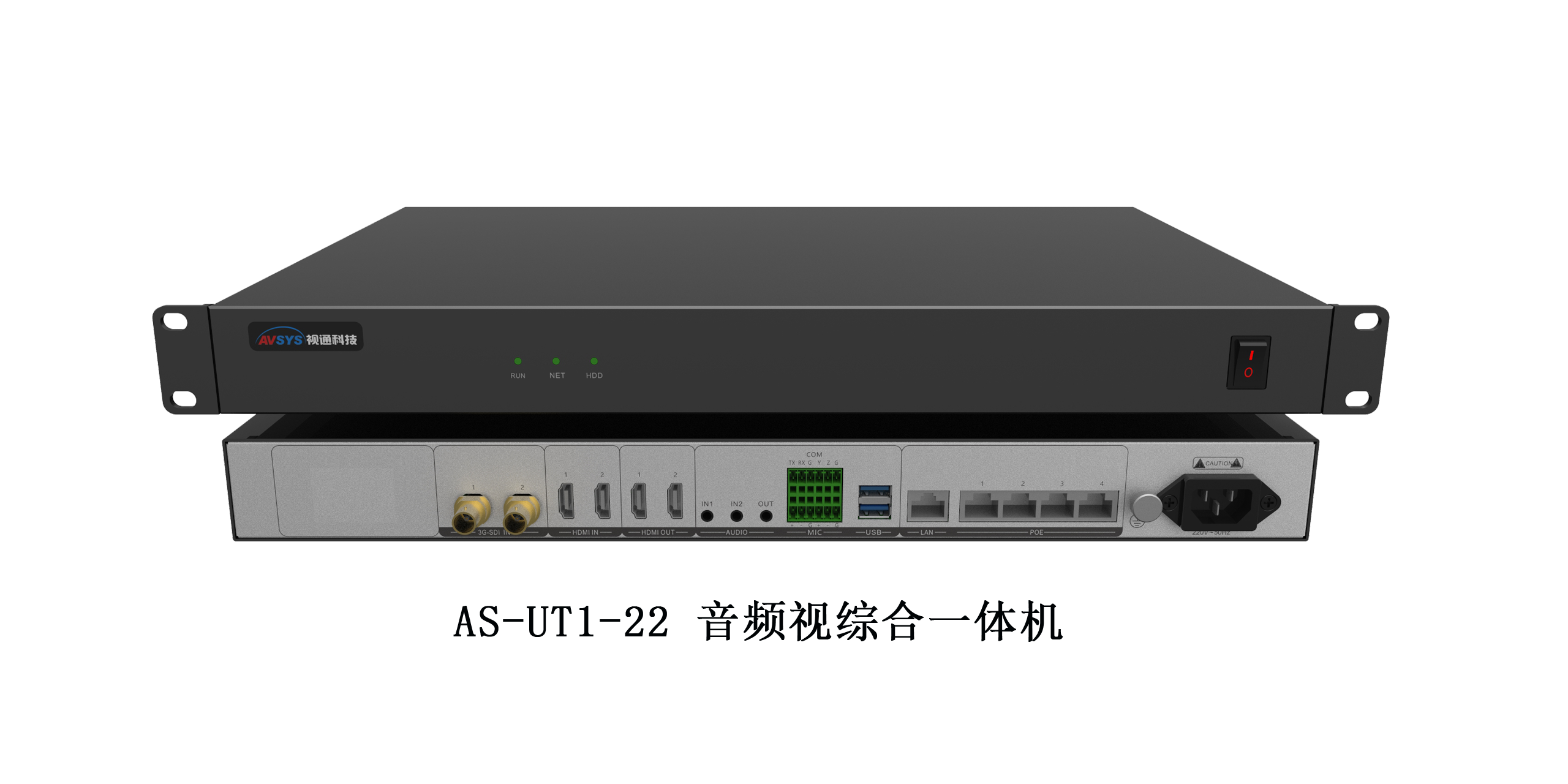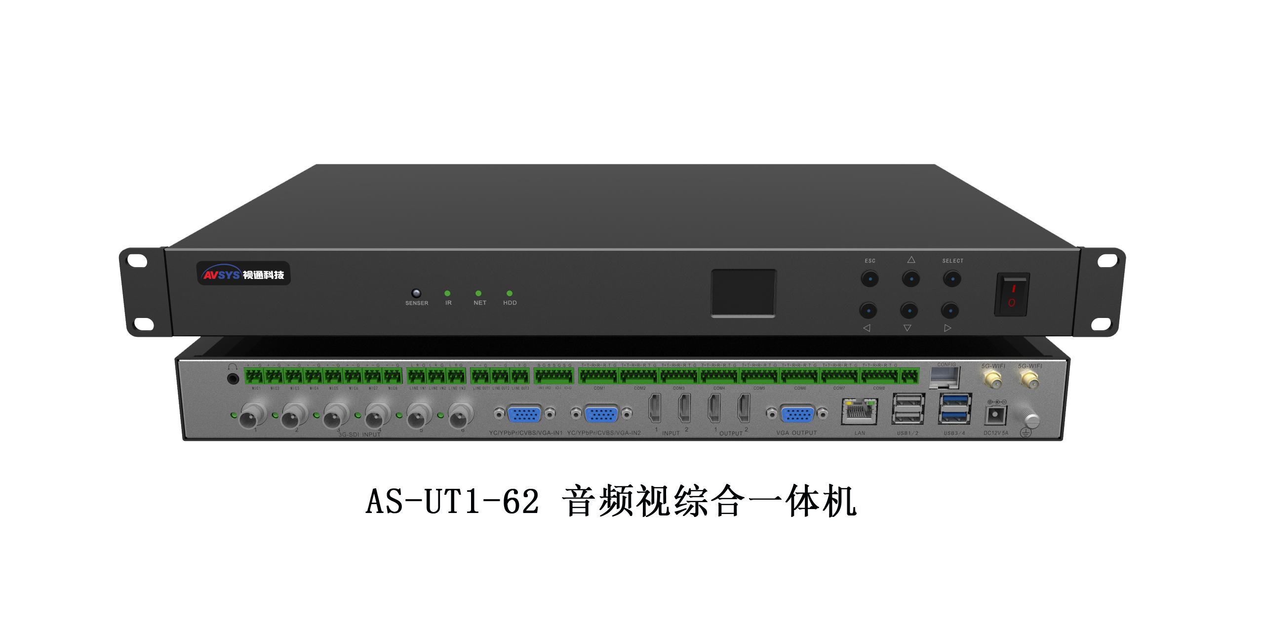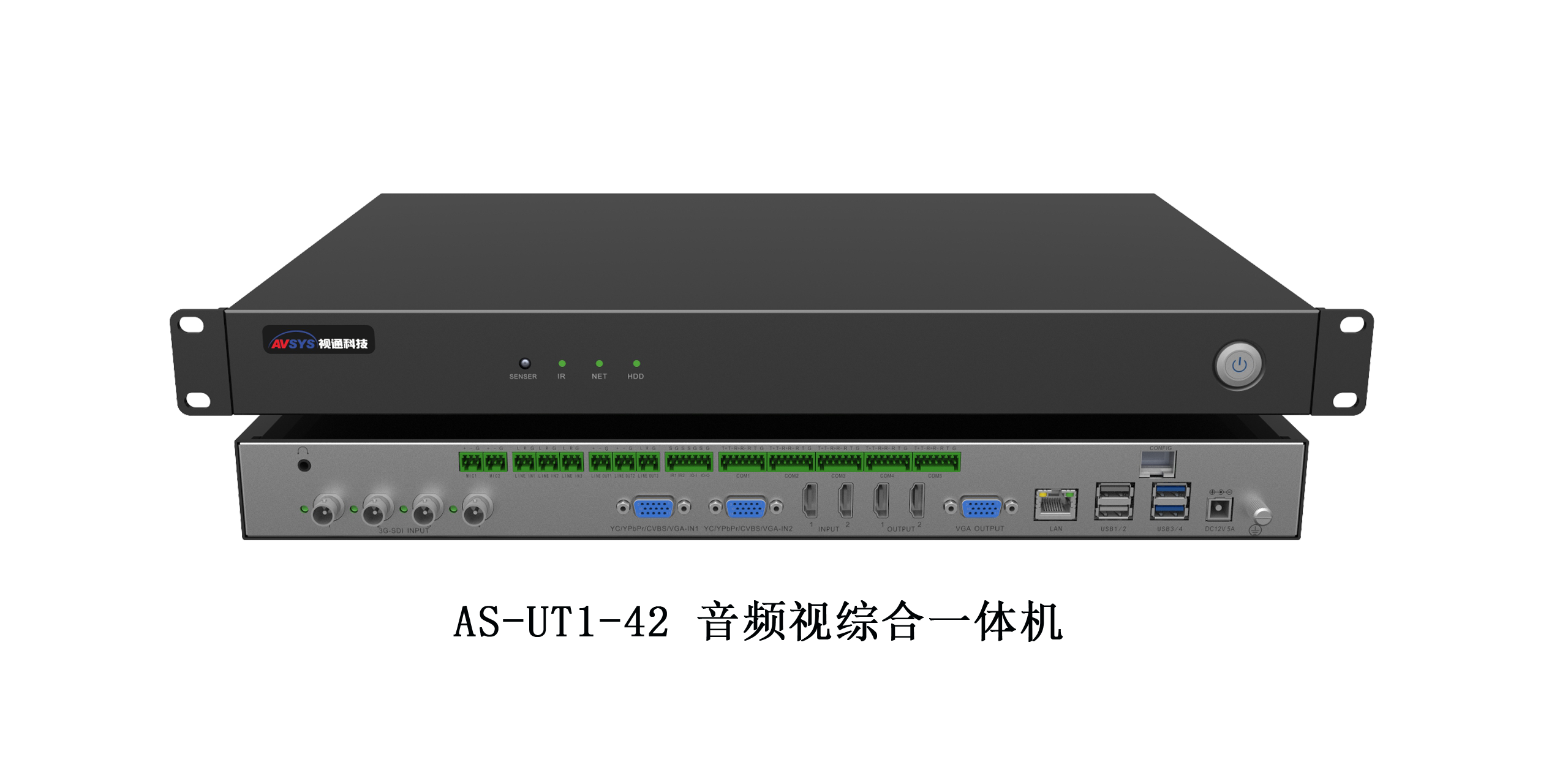 AS-UT1音频视综合一体机具备六大功能: AVCRTM六剑合一,包含音频处理器A、视频无缝混矩V、可编程中控C、录播编解码R、视频会议终端T、多方视频会议MCU,通过可视化综合管理平台将六大功能融合。UT1以智能便捷操作为基础,用户体念为核心,提供B/S、C/S、GUI等多种可视化综合管理平台。采用ALL-IN-ONE的设计理念,运用热插拔模块化设计,具有安装简便,操作简单、维护容易等优点,面对多系统应用场景,通过可视化综合管理平台实现互联互通,集中管控,为用户提供一体化解决方案。 UT1主要面向视频会议室、指挥中心、指挥方舱、车载应急、便携指挥所、数字化手术室、科技法庭等行业打造高度集成的可视化解决方案。